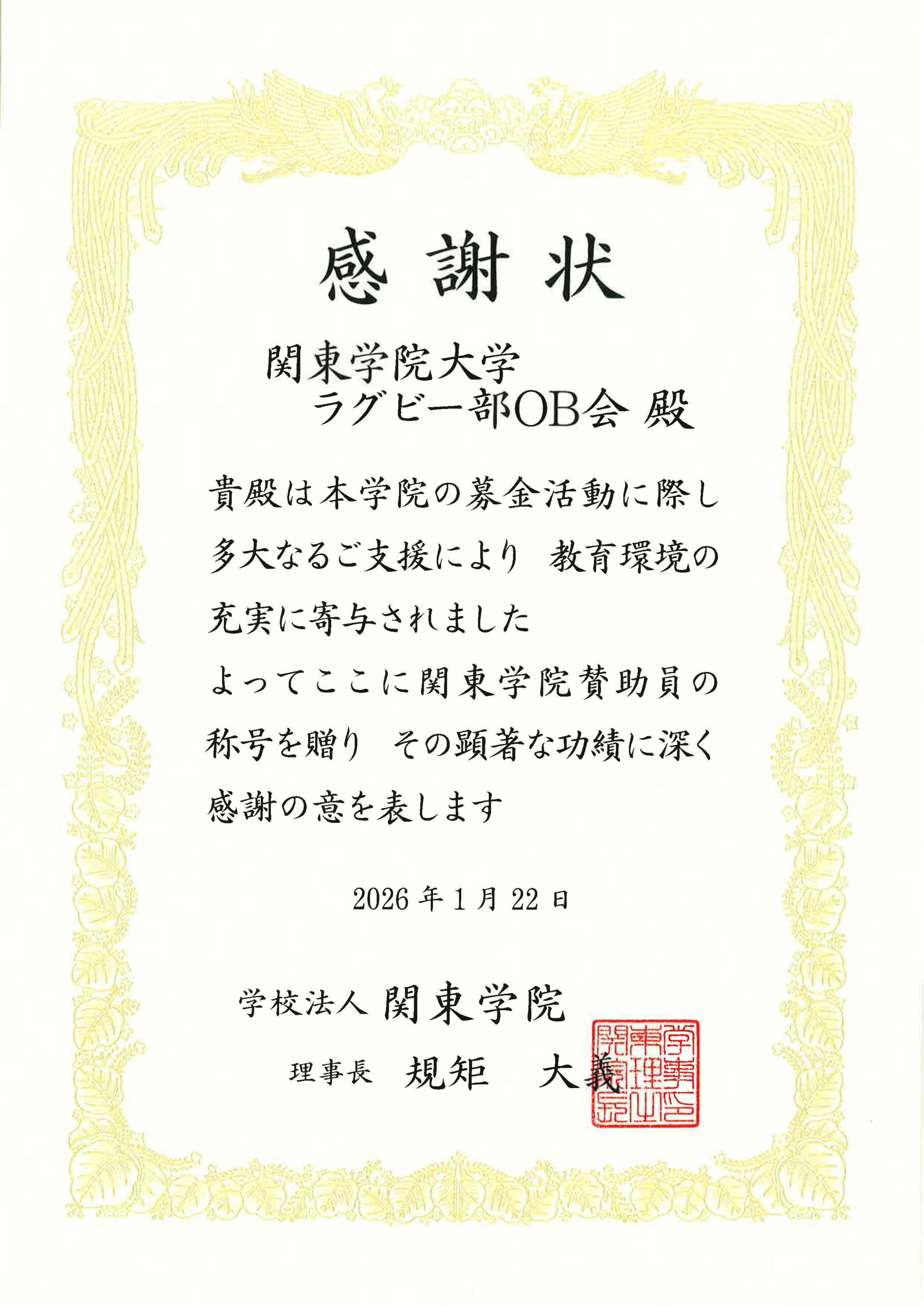 平素は、関東学院大学ラグビー部OB会(以下OB会)運営にご支援ご協力を賜り厚く御礼申し上げます。